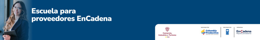 El Ministerio de Comercio, Industria y Turismo y Colombia Productiva, en alianza con el PNUD y como parte de la estrategia ‘EnCadena, mejores proveedores’, buscan mipymes y/o unidades productivas para participar en el programa ‘Escuela para proveedores EnCadena’.